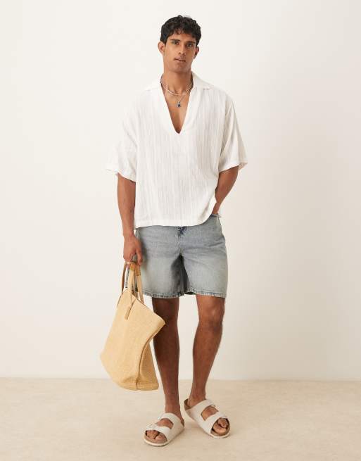 ASOS DESIGN – Jasnoniebieskie standardowej długości jeansowe jortsy