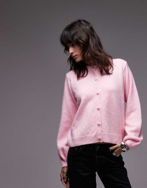 ASOS DESIGN – Jasnoróżowy kardigan z puszystej dzianiny z obszernymi rękawami z obcisłym mankietem