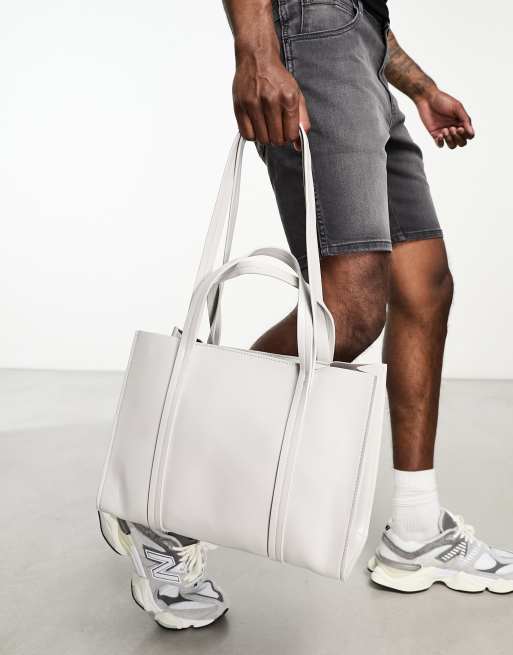 ASOS DESIGN – Jasnoszara torebka tote z imitacji skóry z odpinanym paskiem crossbody