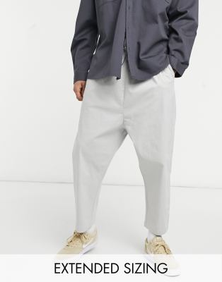 ASOS DESIGN – Jasnoszare chinosy z obniżonym krokiem i gumką w talii