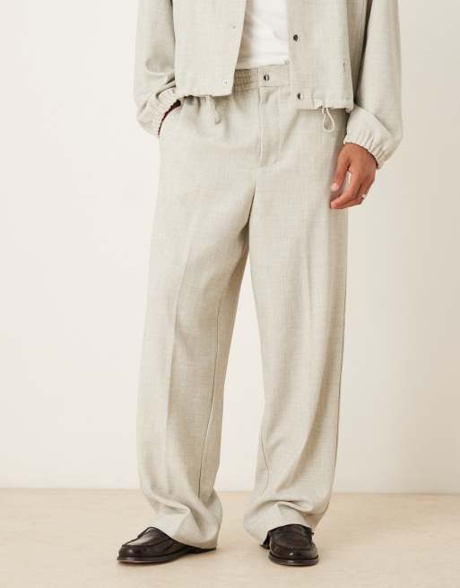 ASOS DESIGN – Jasnoszare melanżowe spodnie eleganckie z szerokimi nogawkami, część zestawu