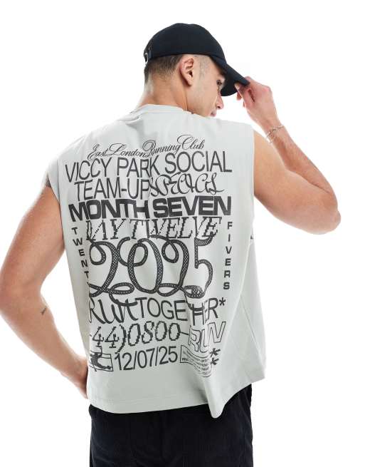 ASOS DESIGN – Jasnoszary top bez rękawów o pudełkowym kroju oversize z nadrukiem na plecach