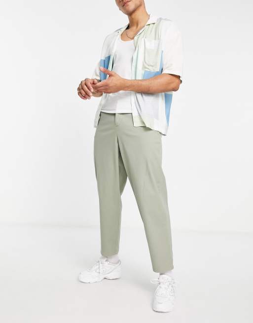 ASOS DESIGN – Jasnozielone chinosy z balonowymi nogawkami