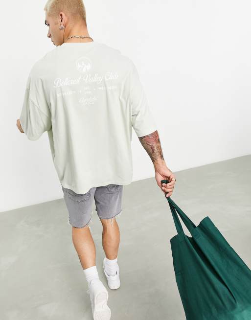 ASOS DESIGN – Jasnozielony T-shirt oversize z nadrukiem na plecach