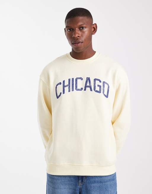 ASOS DESIGN – Jasnożółta bluza o luźnym kroju z haftowanym napisem z efektem postarzania