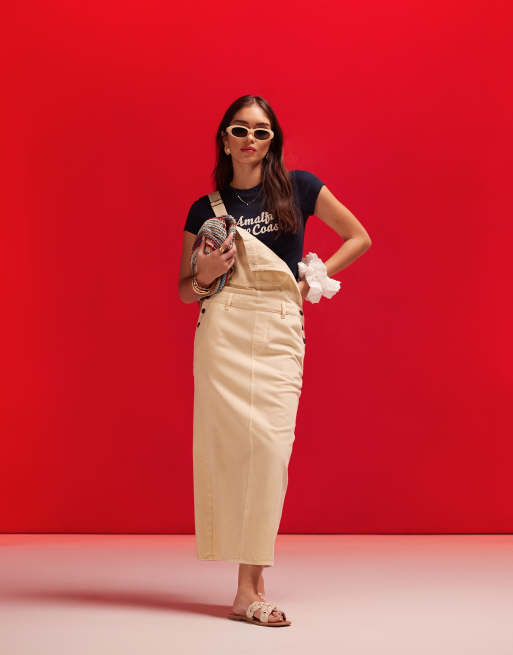 ASOS DESIGN – Jasnożółta jeansowa sukienka o fasonie ogrodniczek