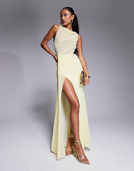 ASOS DESIGN – Jasnożółta prześwitująca sukienka z ozdobnym szwem