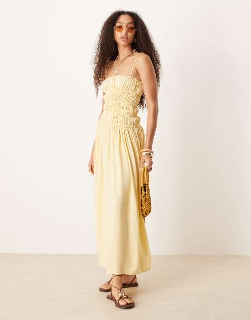 ASOS DESIGN – Jasnożółta sukienka maxi z marszczoną górą z domieszką lnu