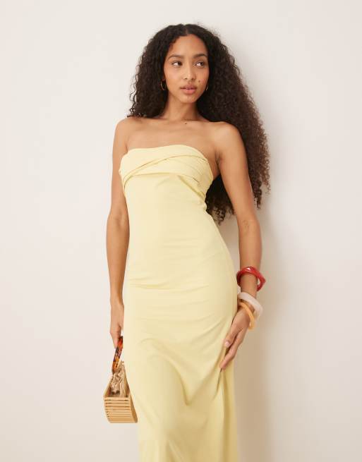 ASOS DESIGN – Jasnożółta sukienka midi ze skręconym dekoltem bandeau