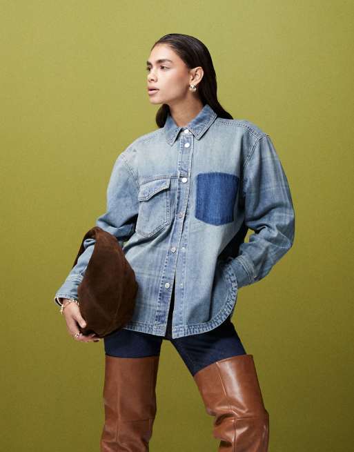 ASOS DESIGN – Jeansowa patchworkowa koszula