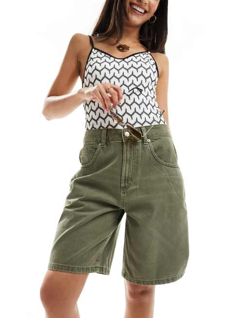 ASOS DESIGN – Jeansowe szorty bermudy w kolorze khaki