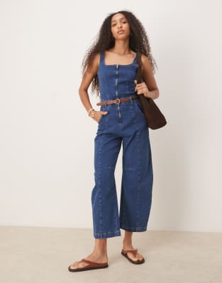 ASOS DESIGN – Jeansowy kombinezon barrel z kwadratowym dekoltem w kolorze indygo