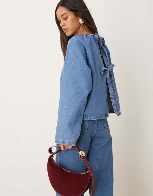 ASOS DESIGN – Jeansowy top w kolorze indygo z raglanowymi długimi rękawami