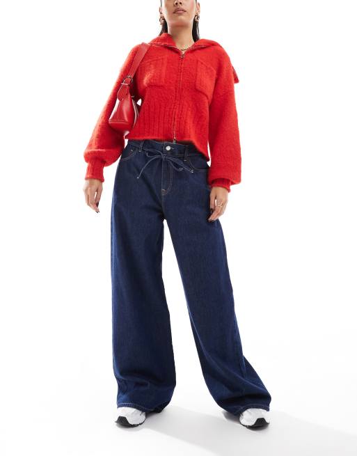 ASOS DESIGN – Jeansy baggy z wiązanym paskiem w kolorze indygo