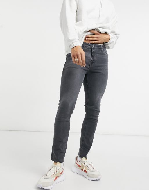 ASOS DESIGN – Jeansy o obcisłym kroju z surowym wykończeniem, w odcieniu spranej czerni