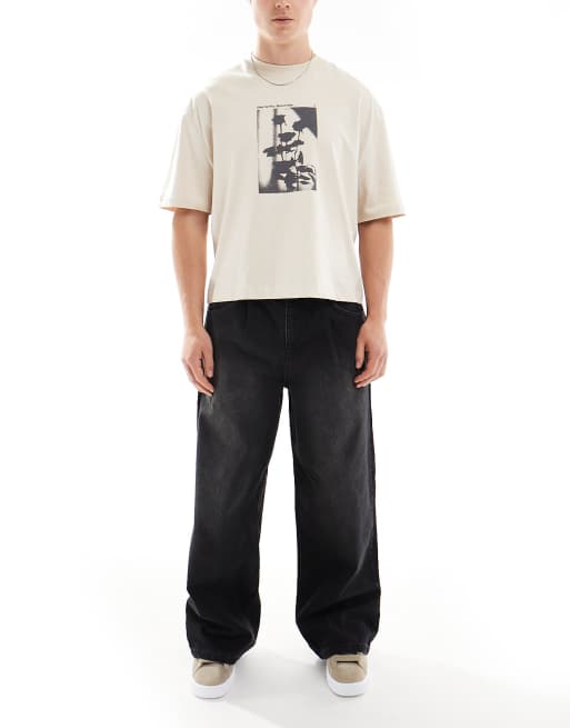 ASOS DESIGN – Jeansy super baggy w spranym czarnym kolorze z przebarwieniem