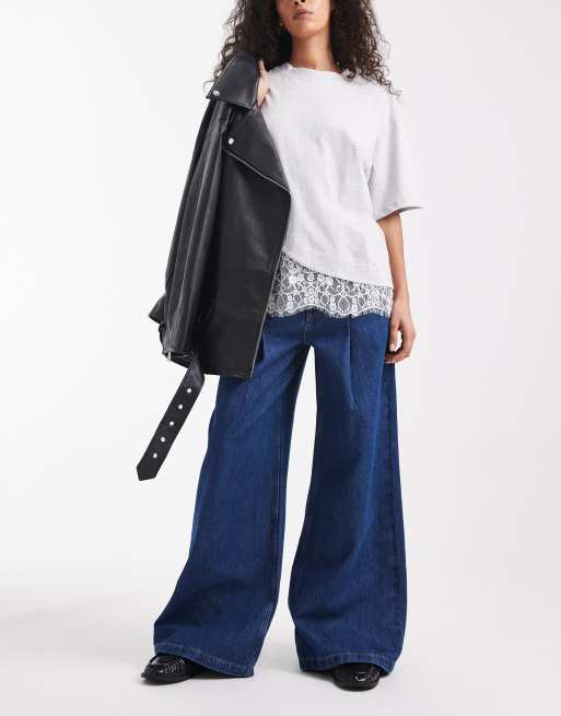 ASOS DESIGN – Jeansy w kolorze indygo z szerokimi nogawkami i zakładkami z przodu