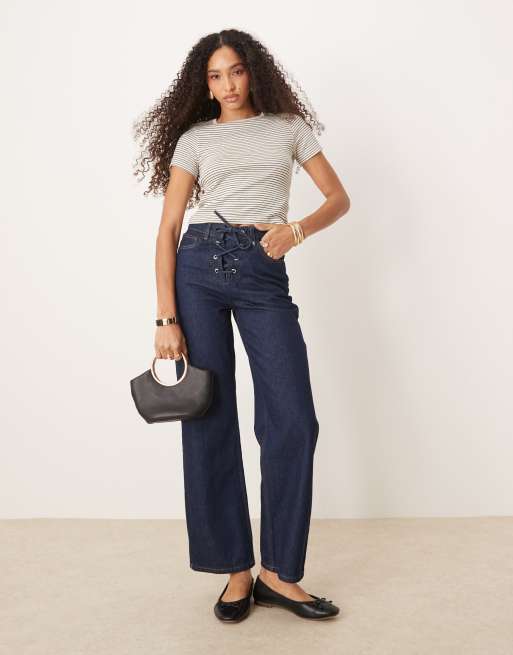 ASOS DESIGN – Jeansy z prostymi nogawkami ze sznurowanym przodem w kolorze spranego indygo