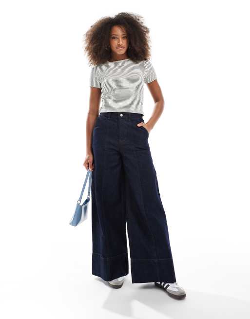 ASOS DESIGN – Jeansy z szerokimi nogawkami z ozdobnym szwem i szerokim mankietem, część zestawu