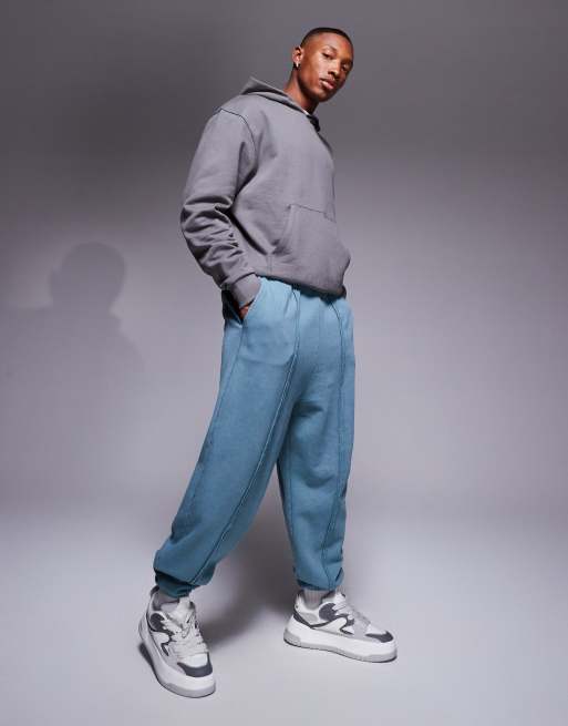 ASOS DESIGN – Joggersy oversize w spranym niebieskim kolorze z ozdobnymi szwami