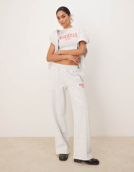ASOS DESIGN – Joggersy z prostymi nogawkami w jasnoszarym melanżowym kolorze z haftowanym wzorem z napisem „Marseille”