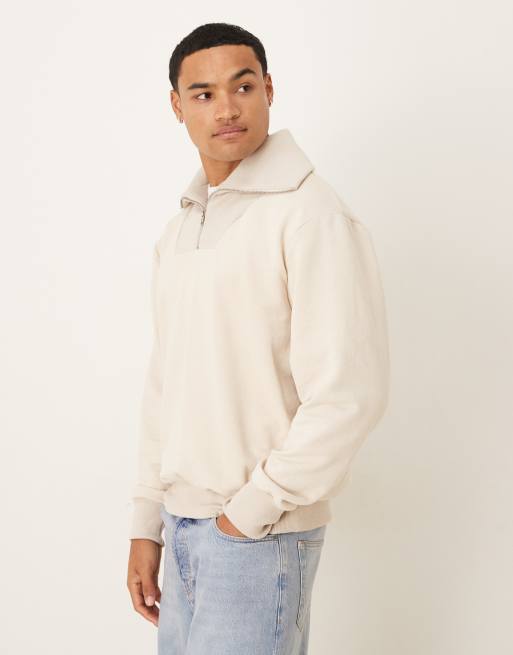 ASOS DESIGN – Kamiennobeżowa bluza oversize z golfem