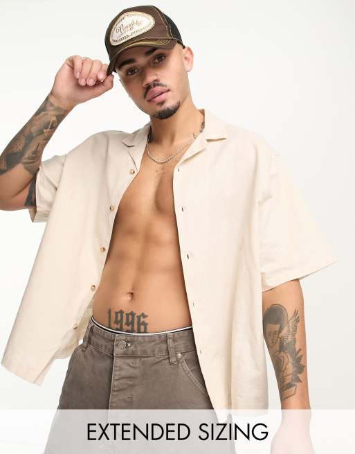 ASOS DESIGN – Kamiennobeżowa lniana koszula oversize o pudełkowym kroju