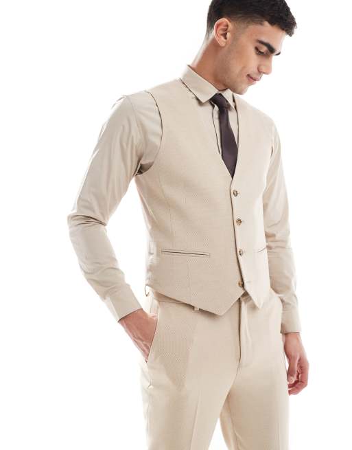 ASOS DESIGN – Kamiennobeżowa teksturowana kamizelka garniturowa o dopasowanym kroju