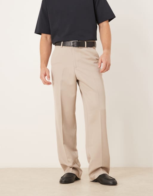 ASOS DESIGN – Kamiennobeżowe eleganckie spodnie z szerokimi nogawkami