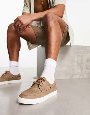 ASOS DESIGN – Kamiennobeżowe mokasyny z imitacji skóry na białej podeszwie