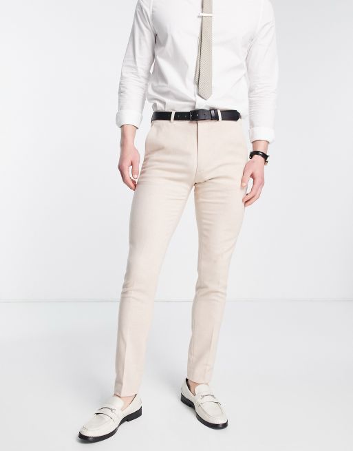 ASOS DESIGN – Kamiennobeżowe obcisłe spodnie z mieszanki wełny o koszykowym splocie