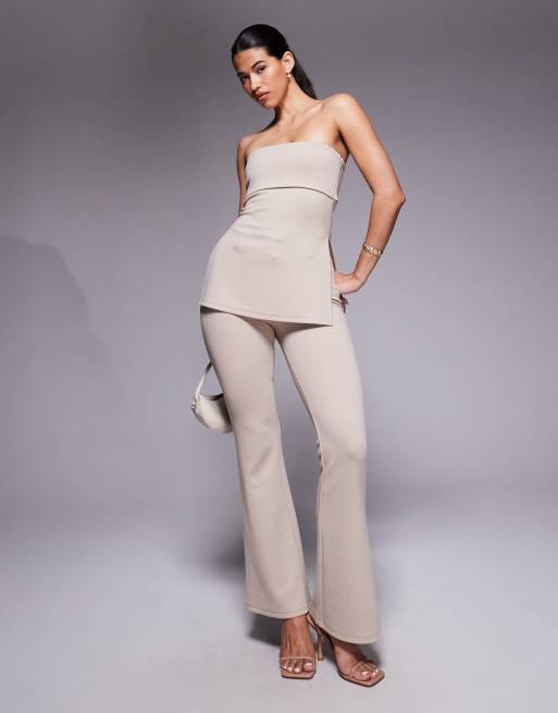 ASOS DESIGN – Kamiennobeżowe spodnie z wąskimi, rozszerzanymi nogawkami z dżersejowego diagonalu, część zestawu