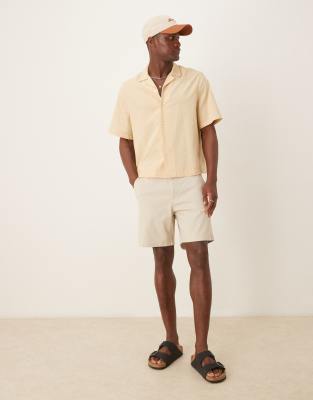 ASOS DESIGN – Kamiennobeżowe średniej długości wciągane szorty chinosy
