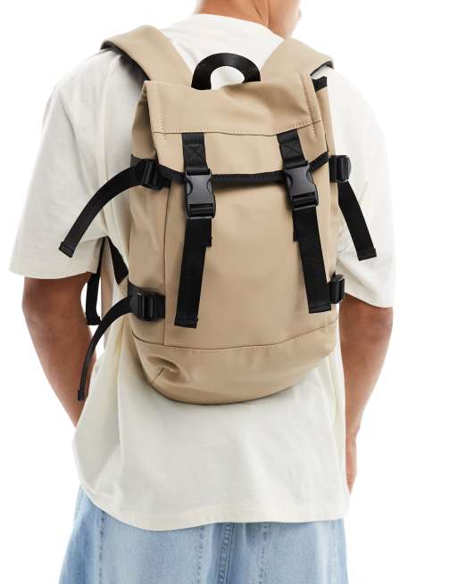ASOS DESIGN – Kamiennobeżowy mały gumowany plecak z kontrastowymi parcianymi detalami