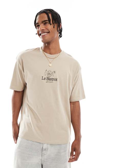ASOS DESIGN – Kamiennobeżowy T-shirt oversize z haftem