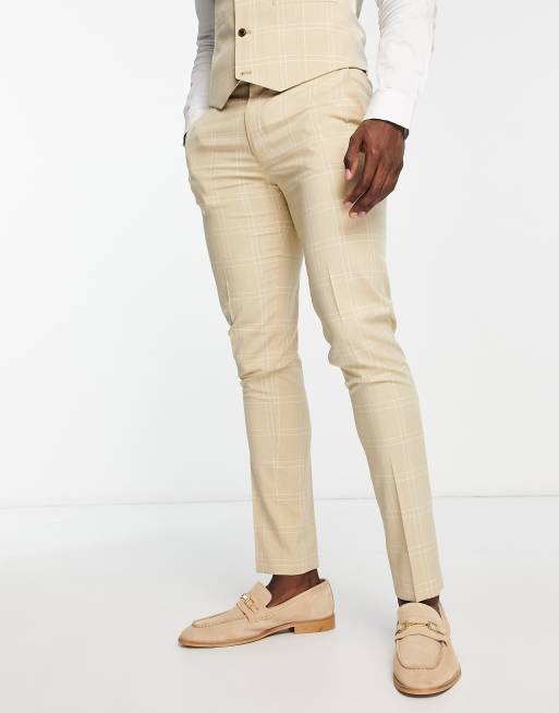 ASOS DESIGN – Kamiennoszare spodnie garniturowe o obcisłym kroju w kratę windowpane
