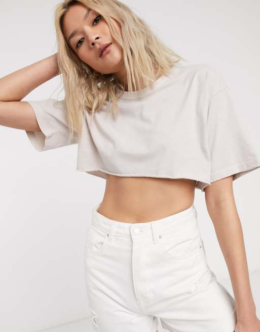 ASOS DESIGN – Kamiennoszary bardzo krótki sprany top