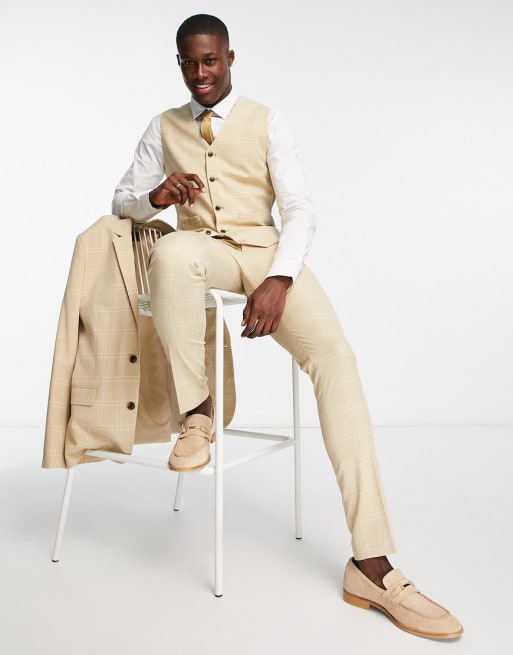 ASOS DESIGN – Kamiennoszary garnitur o obcisłym kroju w dużą kratę