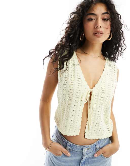ASOS DESIGN – Kamizelka z ozdobnymi szwami z dzianiny pointelle w maślanym kolorze