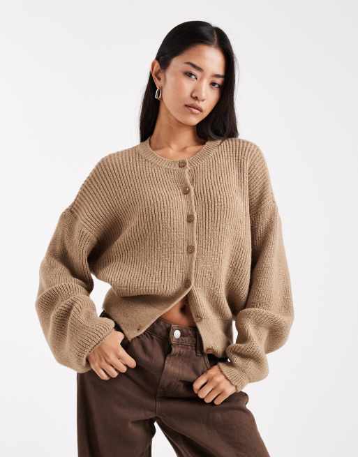 ASOS DESIGN – Kardigan dzianinowy w kolorze mokki z rękawami typu kokon