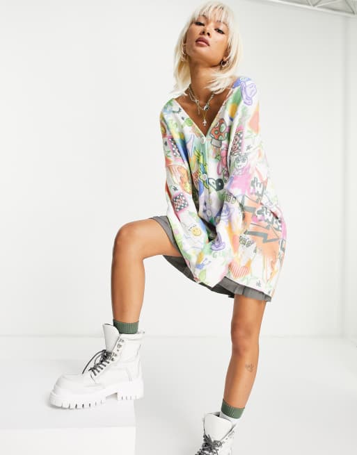 ASOS DESIGN – Kardigan oversize z dekoltem w kształcie litery V, we wzór graffiti