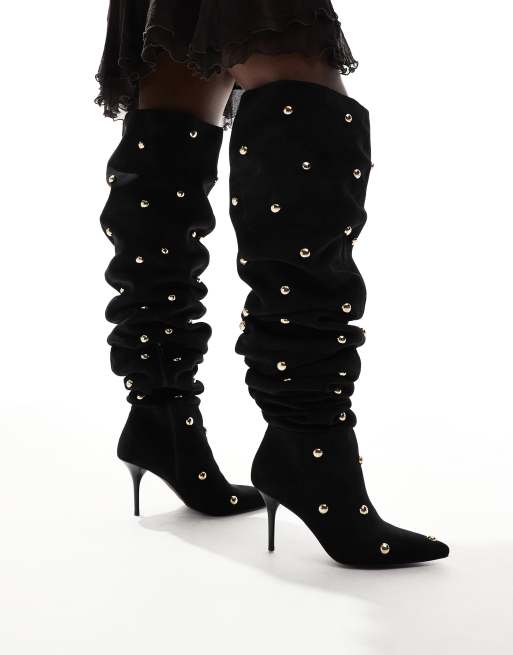 ASOS DESIGN – Karma – Czarne kozaki za kolano na obcasie z ćwiekami