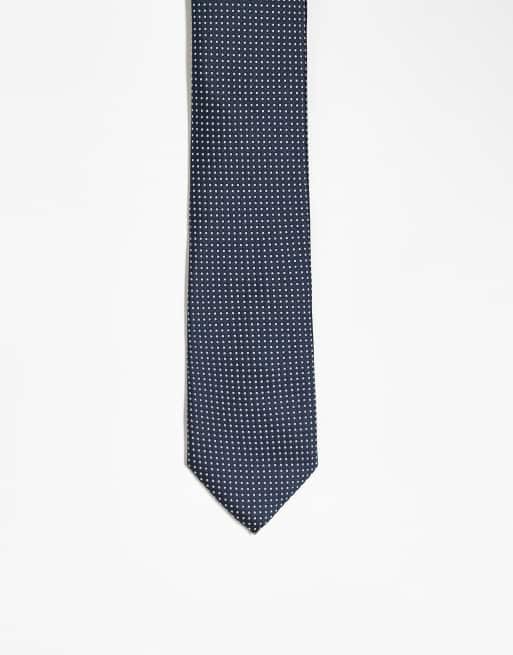 ASOS DESIGN – Klasyczny granatowy krawat w kropki