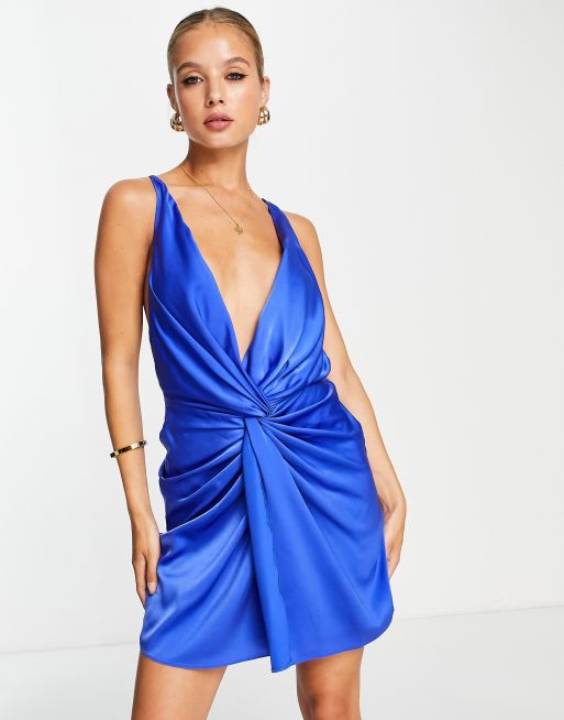 ASOS DESIGN – Kobaltowoniebieska sukienka mini z ozdobnym skręceniem i wiązaniem na plecach