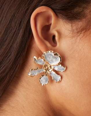 ASOS DESIGN – Kolczyki wkrętki w odcieniu złota z motywem niebieskich kwiatów