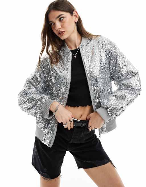 ASOS DESIGN – Kolorowa cekinowa kurtka bomberka oversize