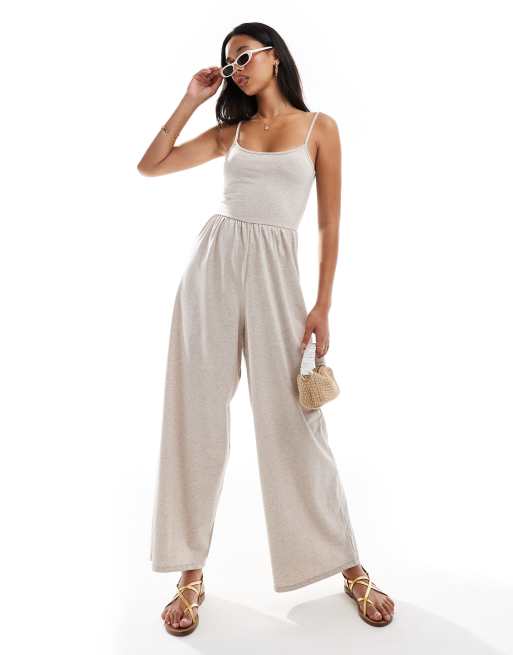 ASOS DESIGN – Kombinezon na ramiączkach z szerokimi nogawkami i dekoltem w kształcie litery U w owsianym kolorze