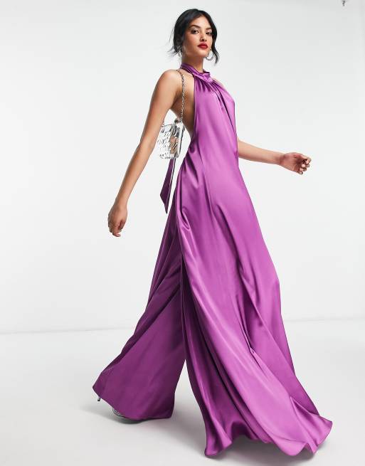 ASOS DESIGN – Kombinezon w kolorze magenta z szerokimi nogawkami, odkrytymi plecami i dekoltem halter