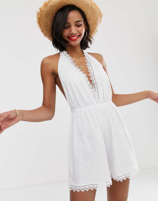 ASOS DESIGN - Kombinezon z dekoltem typu hater z koronkowym wykończeniem