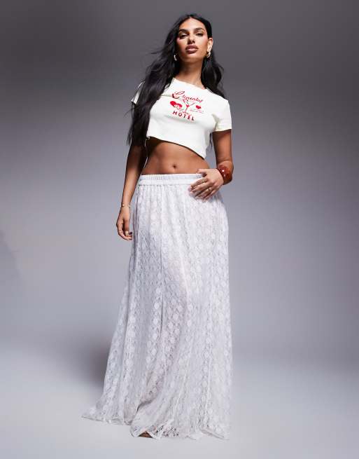 ASOS DESIGN – Koronkowa spódnica maxi z godetami w kolorze kości słoniowej